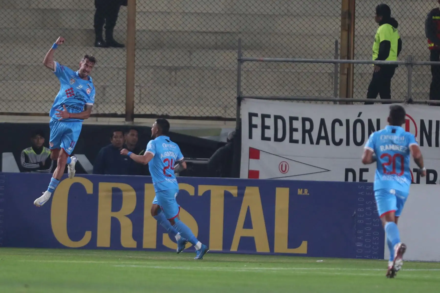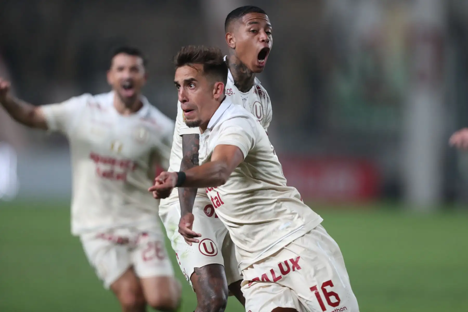 16/08/2024 Universitario celebra el gol ante Deportivo Garcilaso, en el partido correspondiente a la fecha 7 del Torneo Clausura Liga1 2024. Foto: ANDINA / Lino Chipana.