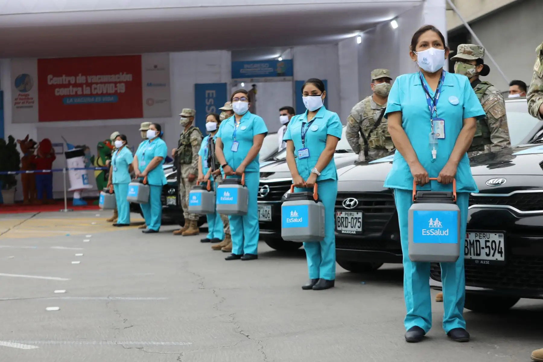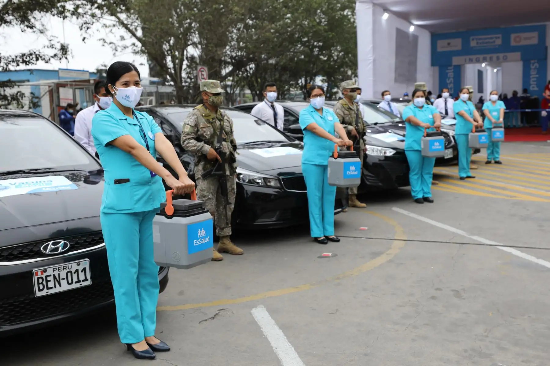16/11/2021 EsSalud presentó esta mañana la flota de 40 unidades vehiculares que trasladarán a las brigadas médicas encargadas de realizar la inmunización a la población asegurada vulnerable que vive en Lima Metropolitana y el Callao. Foto: ANDINA/ EsSalud