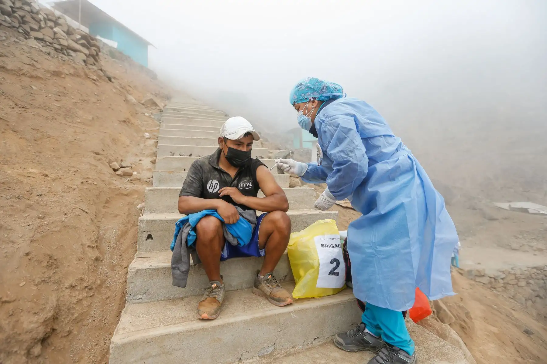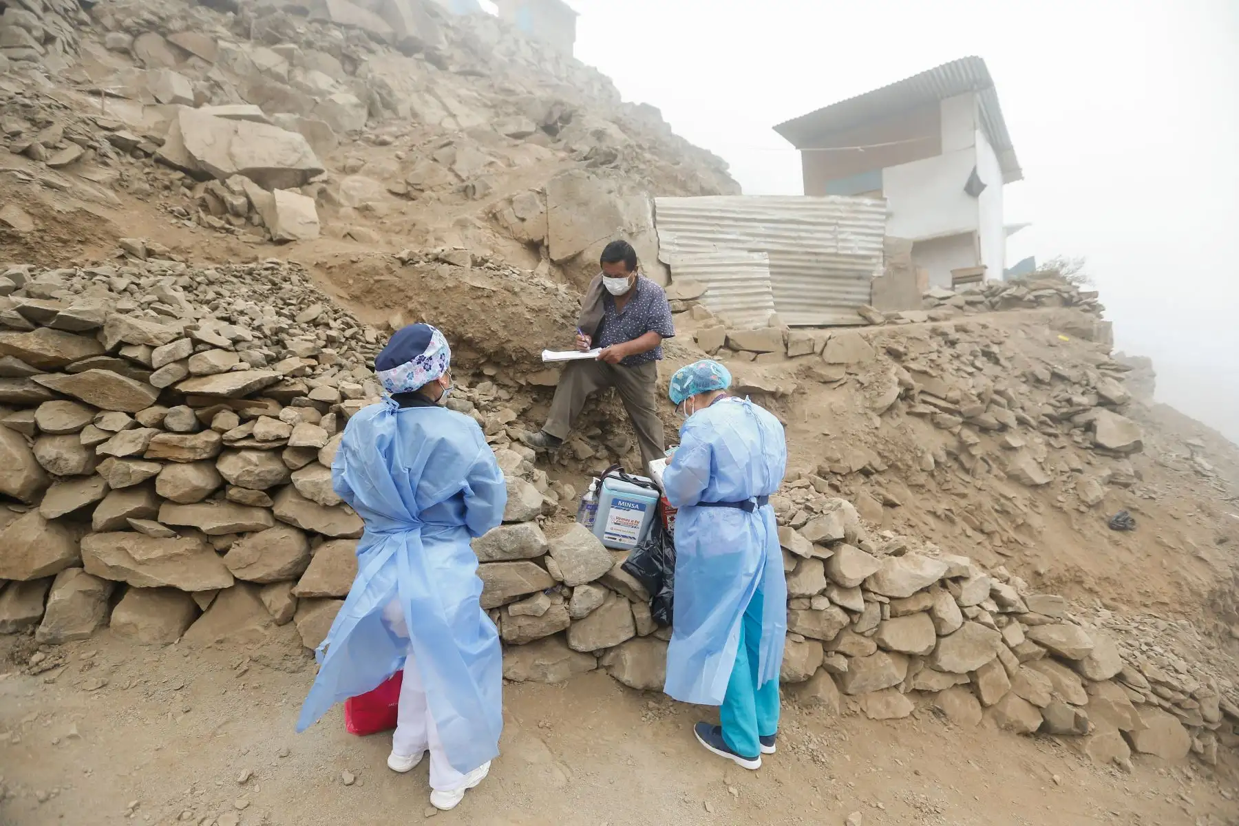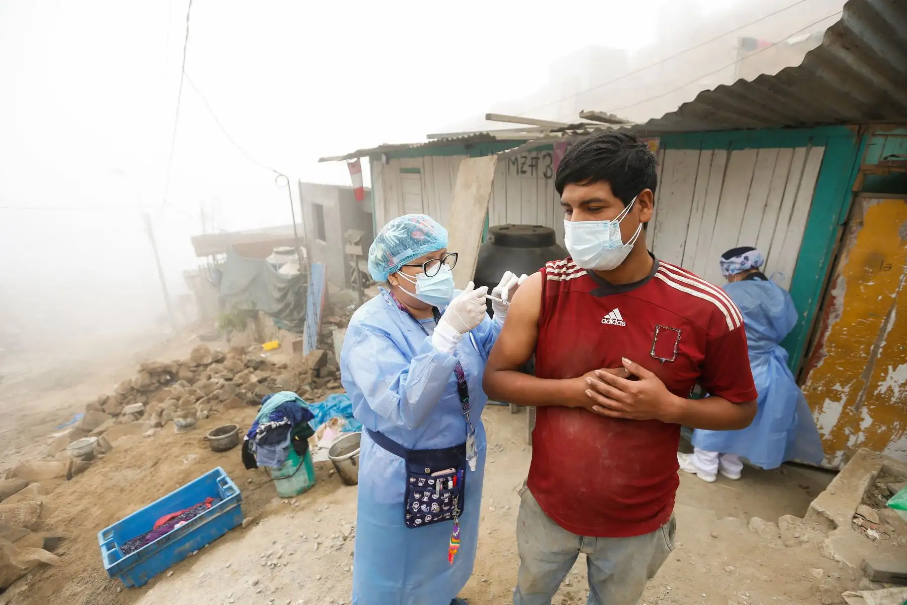 16/11/2021 Viceministro de Prestaciones y Aseguramiento en Salud Augusto Tarazona supervisa estrategia "Vamos a tu encuentro, Vacúnate Ya" en el AA.HH Los Ficus, Villa María del Triunfo. Foto: ANDINA/MINSA