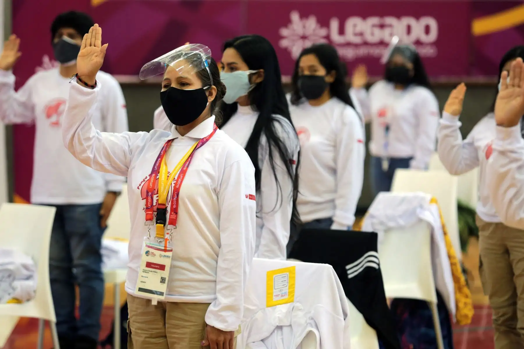 22/05/2021 Los voluntarios de los Juegos Panamericanos y Parapanamericanos se suman desde hoy sábado 22 de mayo, al Plan Nacional de Vacunación contra el COVID-19, tras haber jurado como miembros del voluntariado en una simbólica actividad que se realizó en el Polideportivo 1 de la Villa Deportiva Nacional. VIDENA.