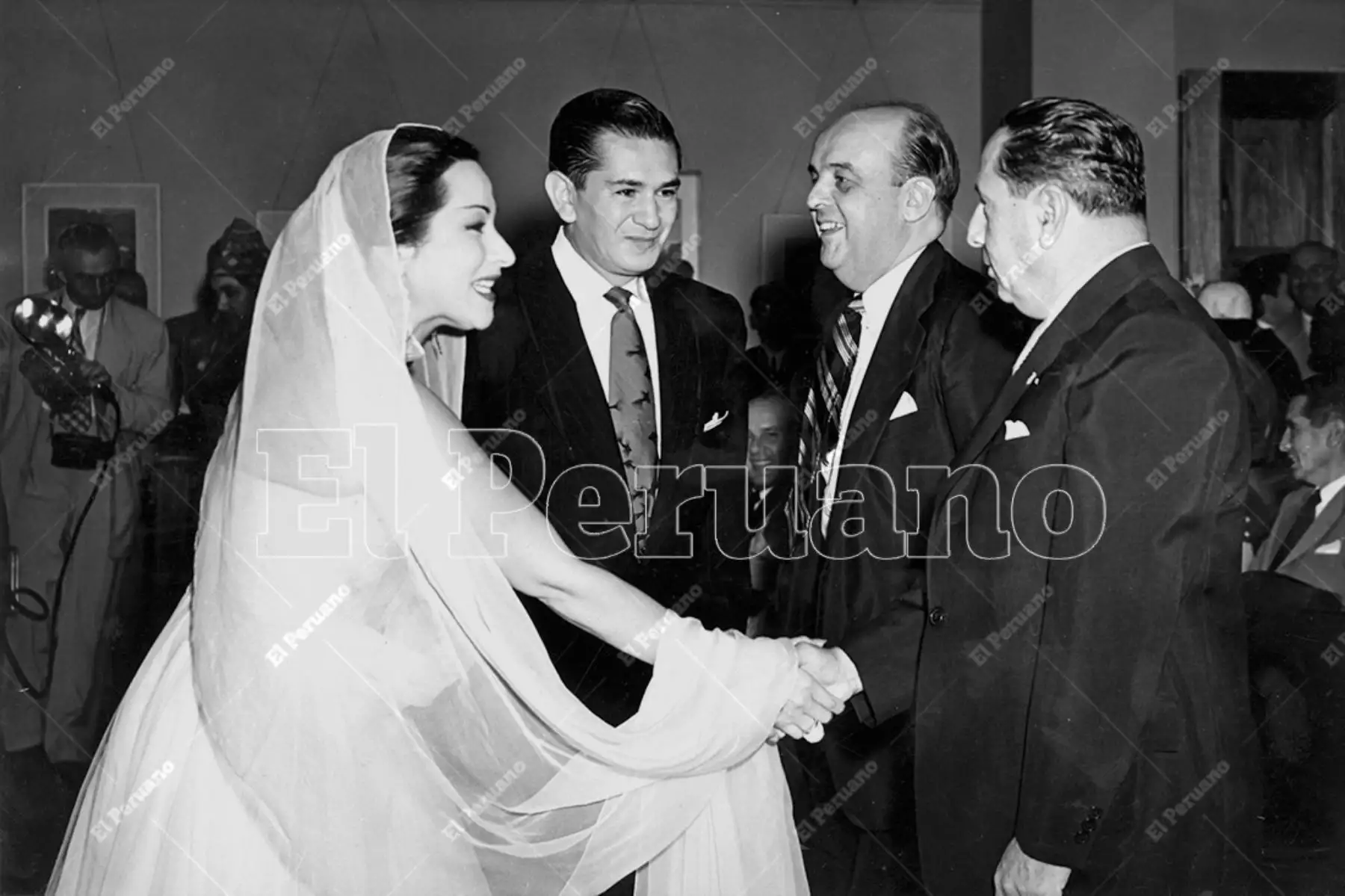 13/09/2022 Lima - 7 abril 1953 / Yma Sumac saluda al presidente de la república, Manuel A. Odría, en presencia del presidente del directorio de La Crónica, Manuel Cisneros, durante la inauguración del moderno edificio del diario La Crónica en la avenida Tacna. Foto: Archivo Histórico de El Peruano