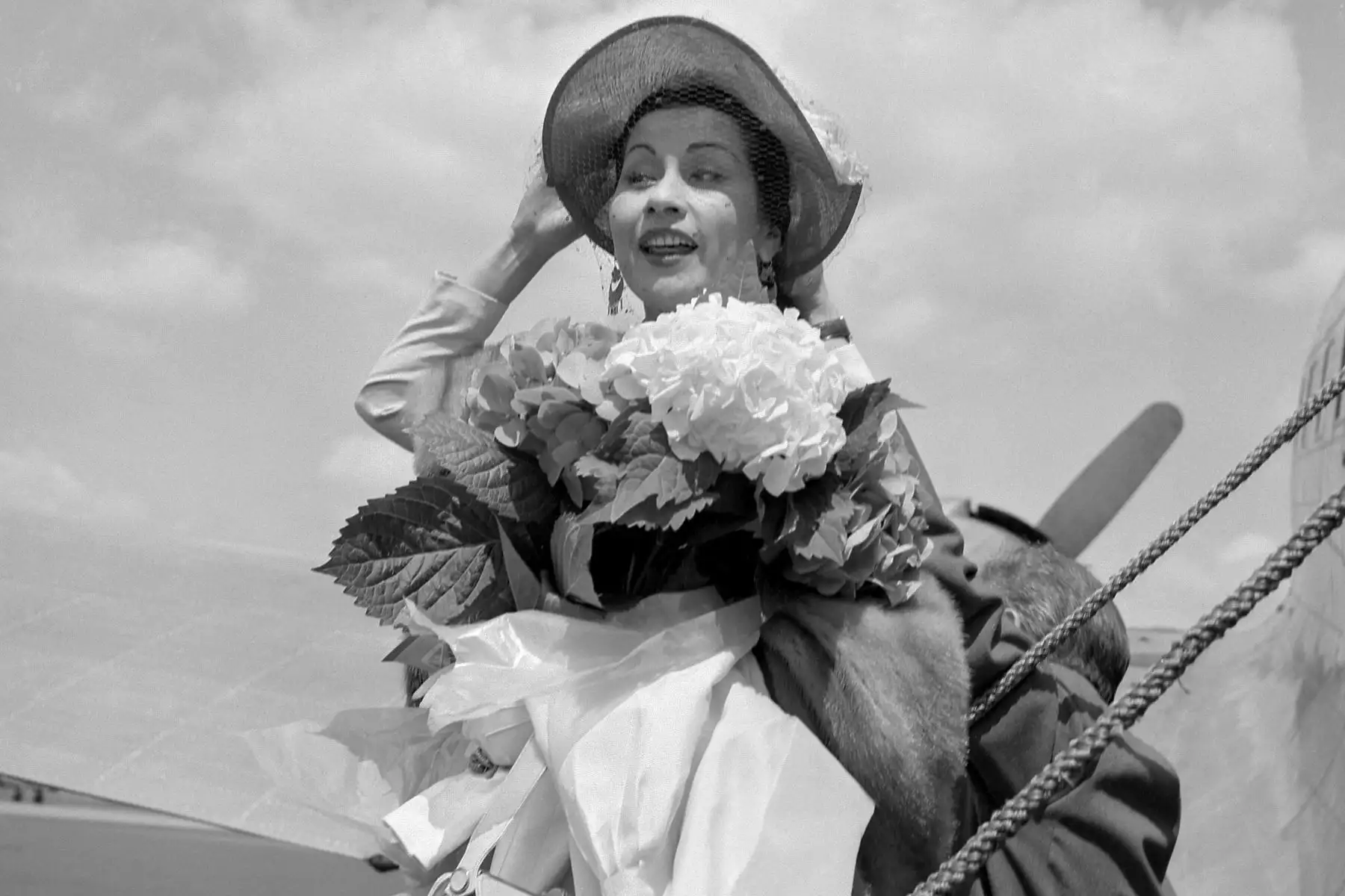 13/09/2022 En esta fotografía de archivo, la soprano peruana Yma Sumac llega al aeropuerto de Le Bourget, cerca de París, el 23 de junio de 1952. Foto: AFP