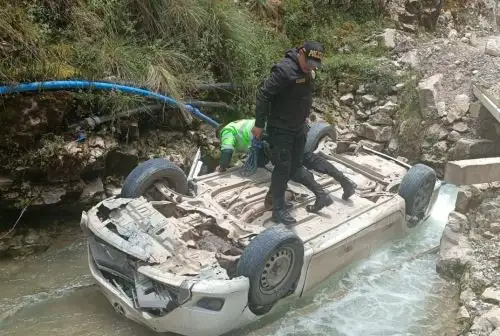 Un accidente de tránsito se produjo este miércoles 11 de febrero en el kilómetro 4+400 de la carretera alterna que conecta el centro poblado de La Quinua con el distrito de Yanacancha, en la provincia y región Pasco. Un automóvil, de placa W3K-454, perdió el control y terminó volcado de forma invertida en el cauce del río Huanca, quedando con los neumáticos hacia arriba.