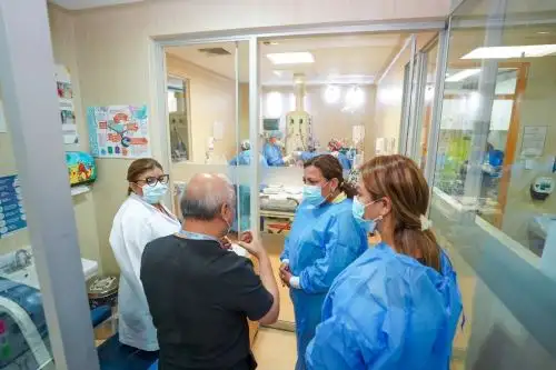 Junto a la directora general del INSN-SB, Zulema Tomás, la ministra Gutiérrez también escuchó a las madres de familia de otras niñas que se encuentran hospitalizadas, para conocer de cerca sus casos y la atención que reciben.