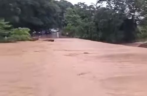Gran cantidad de agua de un riachuelo que cruza por esta zona de selva central cubrió la plataforma asfáltica impidiendo de esta forma el pase de vehículos, solo se espera que el caudal disminuya en el transcurso de las horas.