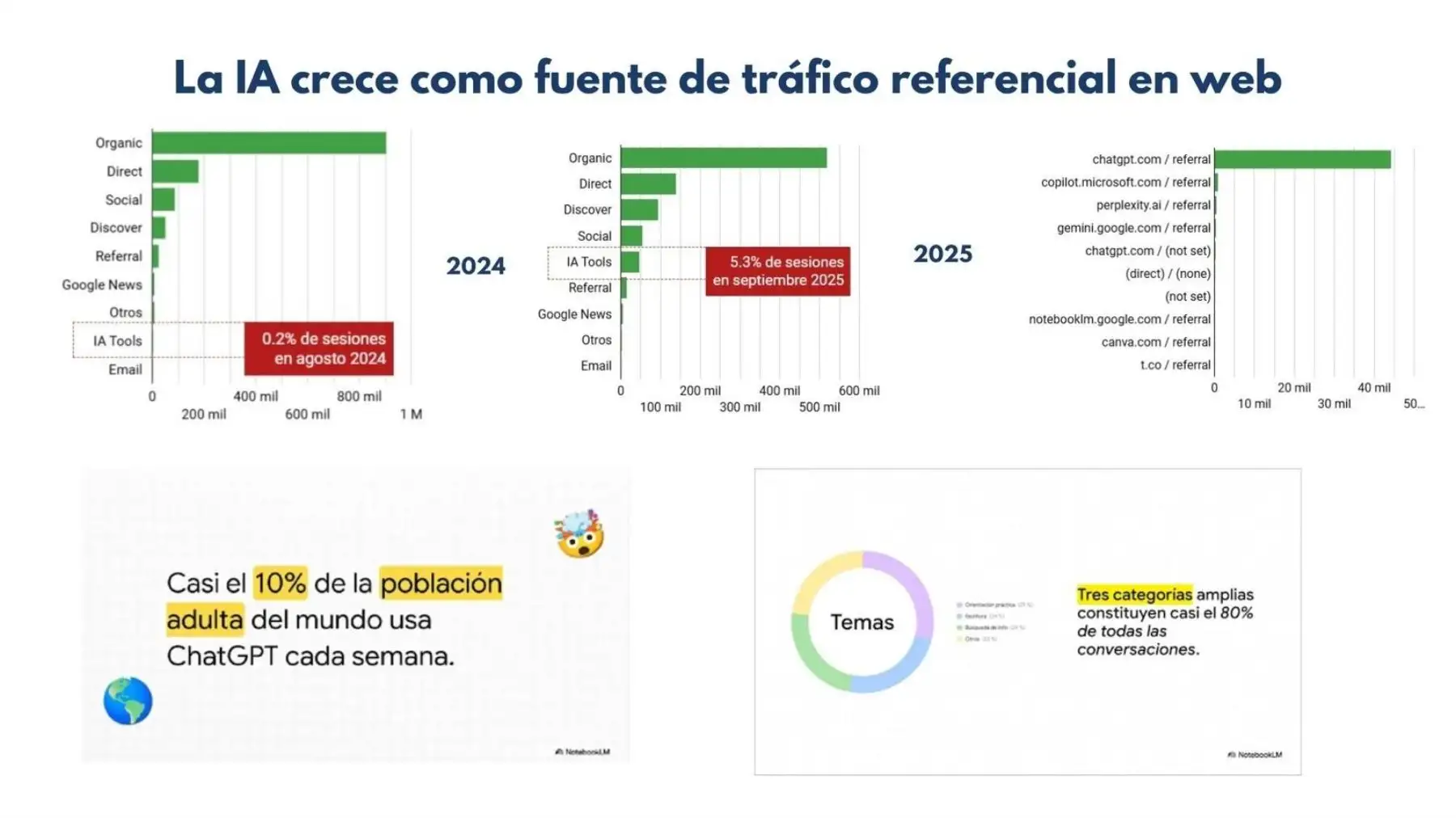 Por Antonio MancoLa inteligencia artificial (IA) se ha convertido en un motor clave para la Agencia Peruana de Noticias Andina. Solo en septiembre pasado, el tráfico web proveniente de herramientas como ChatGPT, Copilot y Gemini representó el 5.3 % de las sesiones, una cifra relevante que marca el inicio de un cambio en los hábitos de búsqueda de la audiencia peruana.