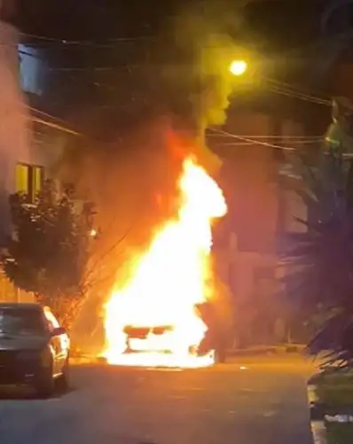 delincuente arroja la sustancia y le prende fuego al vehículo, para luego escapar con rumbo desconocido.