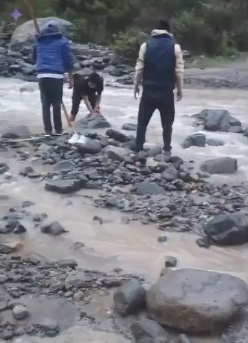 Transportistas junto a sus pasajeros tienen que bajar permanente de sus vehículos para tratar de sortear los tramos interrumpidos, en otros casos de forma manual tratan de retirar las piedras y rocas que trae consigo la crecida de las aguas.