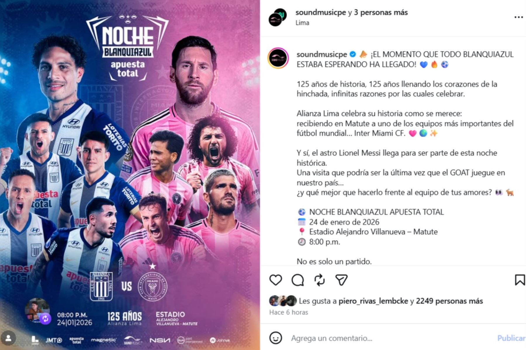 La productora Sound Music Entertainment confirmó a través de sus redes sociales la realización del evento, generando expectativa entre los seguidores del club: “¡El post que todos estaban esperando!, ¡sí, blanquiazul! Los rumores son ciertos. Este 24 de enero, Matute se viste de gala para recibir al Inter Miami en la Noche Blanquiazul”, señaló la publicación oficial.