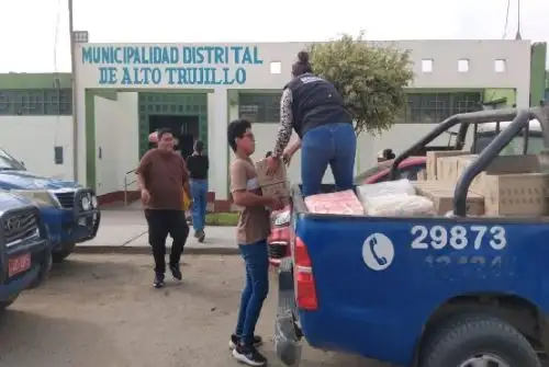 Tras la emergencia, la Municipalidad Distrital de Alto Trujillo gestionó la ayuda humanitaria y fue la encargada de repartir los alimentos a cada una de estas familias que se encuentran en estado de vulnerabilidad, por sus escasos recursos económicos.