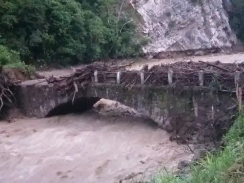 incremento violento del caudal arrastró lodo, piedras, palizada y todo lo que encontró a su paso, dañando los accesos a este recurso natural, considerado uno de los principales atractivos turísticos de Omia y motor económico del distrito.