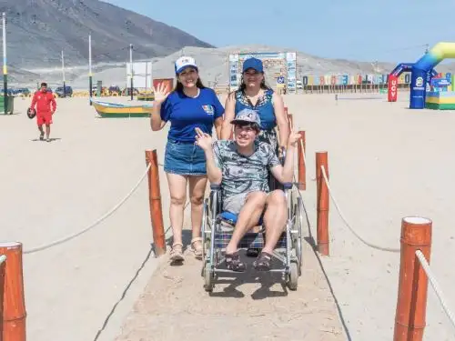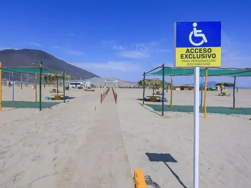 calificación de playa saludable otorgada por la Digesa, así como con locales de venta de alimentos y servicios de deportes acuáticos. No obstante, el elemento que marca la diferencia es la implementación de un camino de madera exclusivo, diseñado para facilitar el ingreso de personas usuarias de sillas de ruedas, muletas u otros apoyos de movilidad, permitiéndoles llegar directamente hasta la orilla del mar.