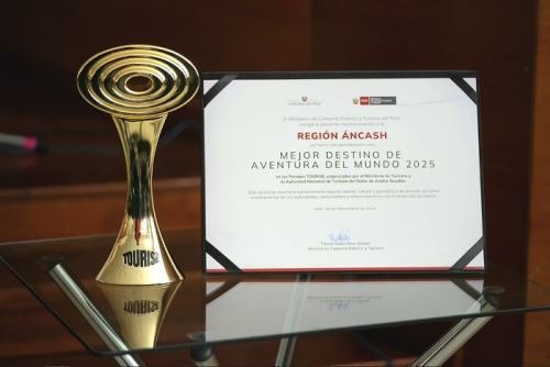 El galardón fue entregado al gobernador regional, Koki Noriega, por la viceministra de Turismo, Aracelly Laca, en una ceremonia organizada en la Cámara de Comercio, Industria y Turismo de Áncash, con la participación de autoridades nacionales, regionales y locales.