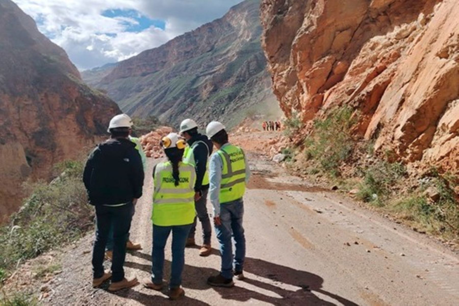 Las intervenciones se ejecutan luego de la pérdida de plataforma ocasionada por el desprendimiento de rocas en la zona.