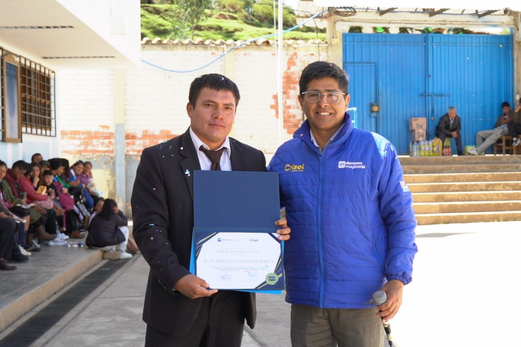 El profesor Juan Castillo Mendoza, docente de la institución educativa San Antonio Padua de Casca, provincia de Mariscal Luzuriaga, región Áncash, fue reconocido como el Mejor Maestro Lector del Mes por la Biblioteca Digital para Maestros (BDM) Derrama-Crisol.