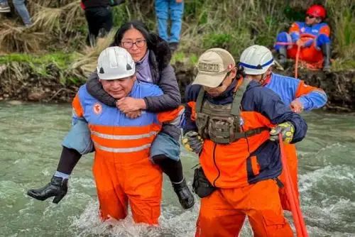 Ante esta situación, decenas de viajeros se han visto obligados a cruzar a pie el río para poder continuar su trayecto hacia sus destinos, mientras las autoridades realizan acciones para restablecer la transitabilidad en esta importante vía en la sierra de Áncash.