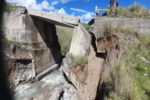 El tránsito vehicular continúa totalmente interrumpido en la carretera nacional PE-3N, tramo Conococha - Cátac, tras el colapso del puente Collota ocurrido anoche en el distrito de Cátac, provincia de Recuay, región Áncash.