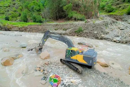 Frente al incremento del caudal del río Chalhuanca debido a las intensas lluvias, el Gobierno Regional de Apurímac ejecuta de manera sostenida la obra de defensa ribereña en 11 tramos estratégicos, priorizando la protección de las viviendas y la seguridad de la población.