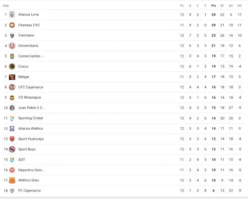 Asimismo, Universitario de Deportes se quedó en la cuarta posición, con 21 puntos, al sufrir una sorpresiva derrota por 1-2 en el Estadio Monumental de Lima frente al Alianza Atlético, que avanzó hasta la duodécima posición, con 14 puntos.