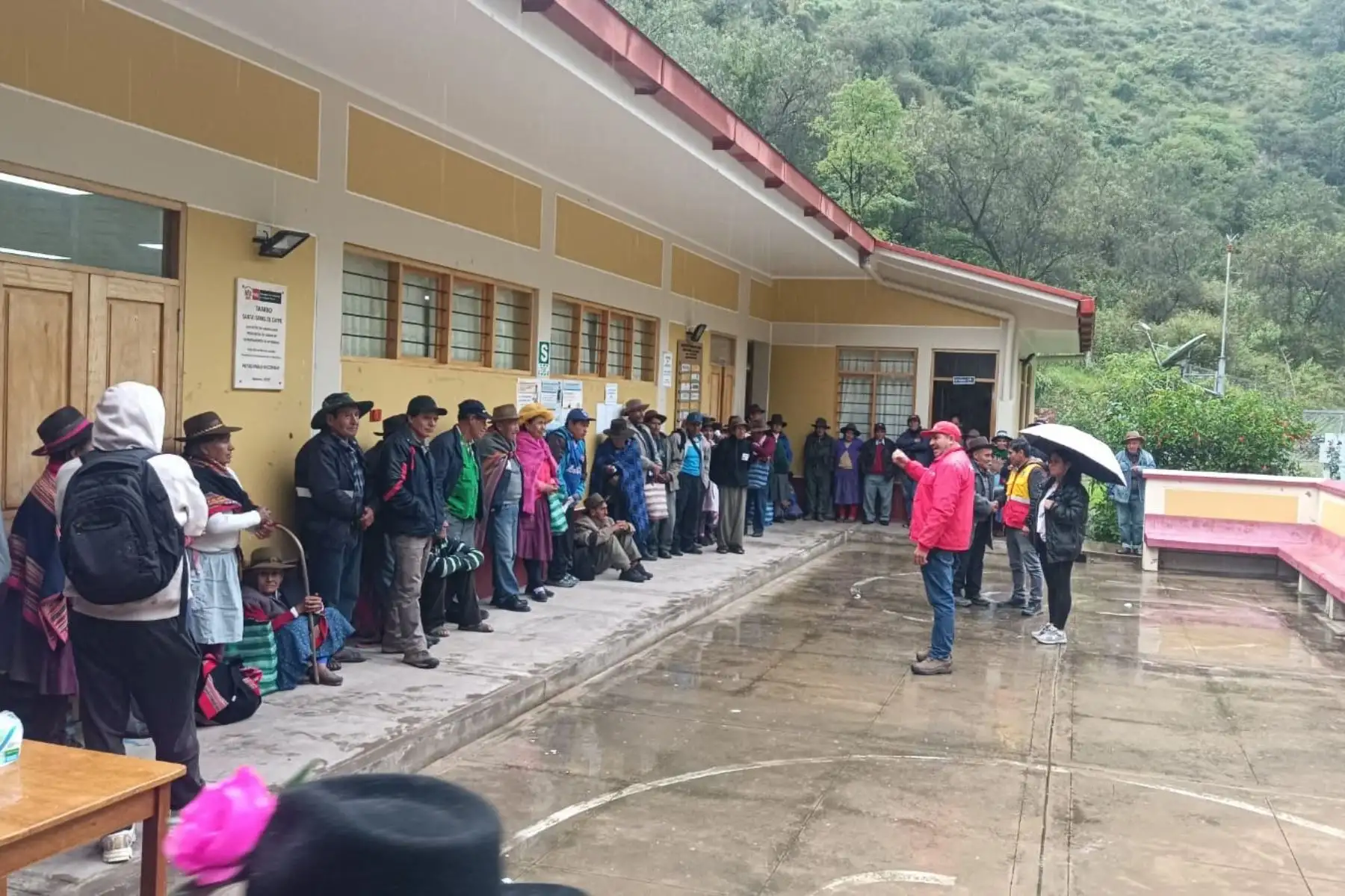 En el Tambo Santa Isabel de Caype se apoyó a los gestores del programa Pensión 65 para pagar el bono a la población del distrito de Lambrama, en la provincia de Abancay. Se armaron colas de manera ordenada.