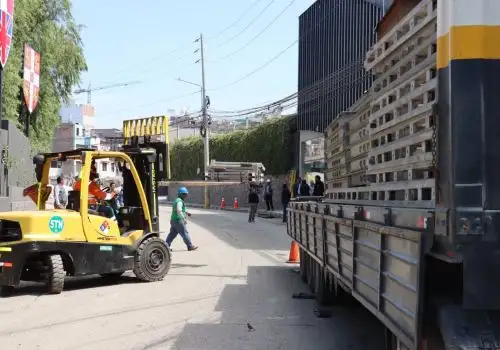 El puente modular tipo Bailey fue descargado este jueves 12 de marzo en la calle Grande, límite de los distritos de Yanahuara y Cayma, a la espera de ser instalado en los próximos días.