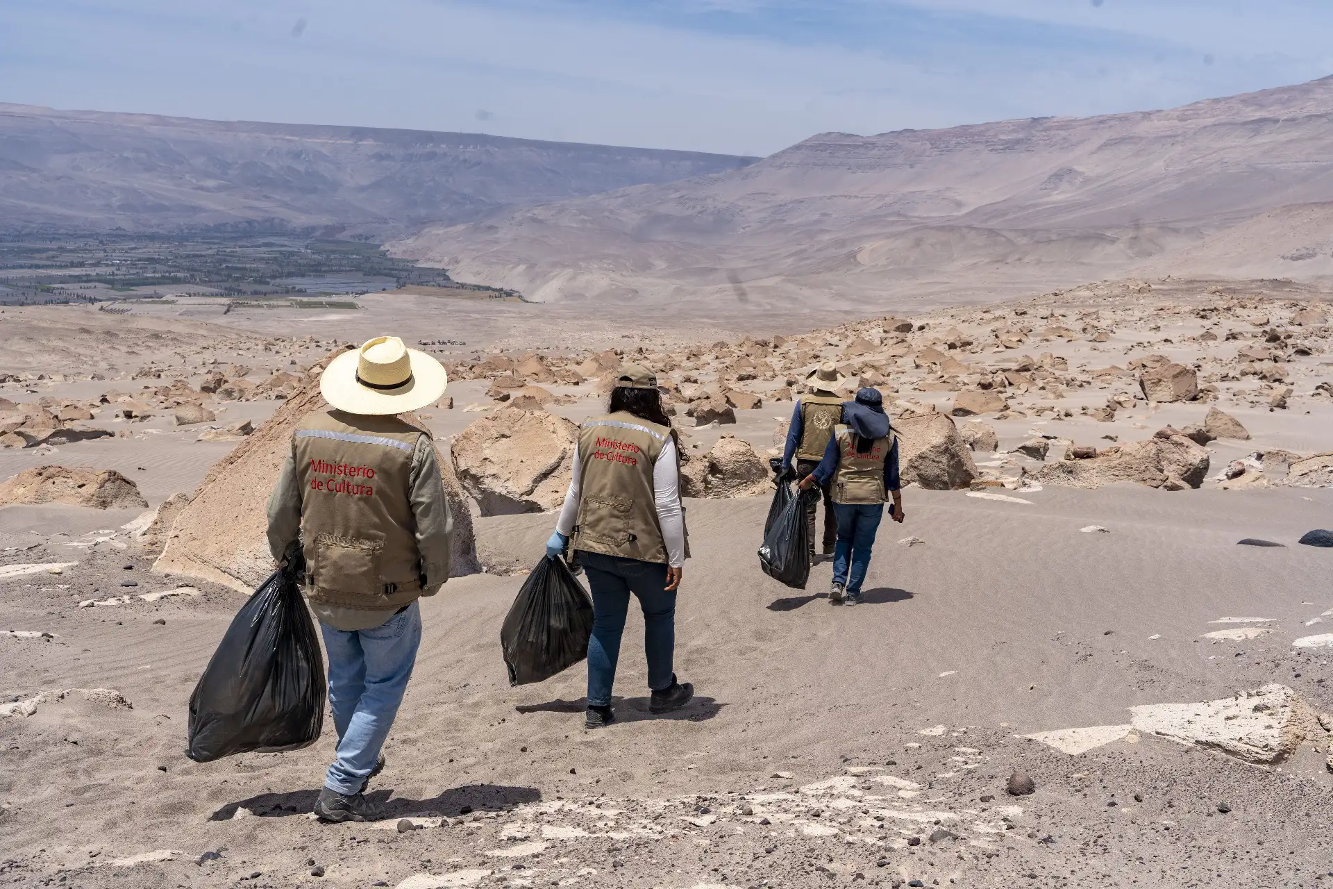 Personal de la Dirección Desconcentrada de Cultura de Arequipa y voluntarios recolectaron 30 bolsas de residuos sólidos durante una jornada de limpieza desarrollada en el complejo arqueológico de Toro Muerto, ubicado en el distrito de Uraca, provincia de Castilla, región Arequipa.