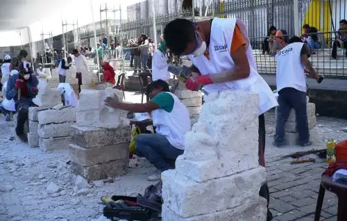 Ellos trabajan al aire libre en el frontis de la Catedral, por lo que la elaboración de sus piezas puede ser seguida por la población arequipeña, y los turistas nacionales y extranjeros que pasan por el lugar.