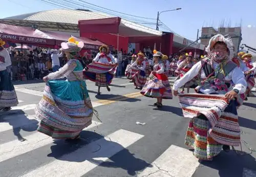 Ellos hacen su paso por la avenida Independencia, donde la población arequipeña se ha dado cita para espectar el desfile de las agrupaciones que presentan danzas típicas de su jurisdicción.