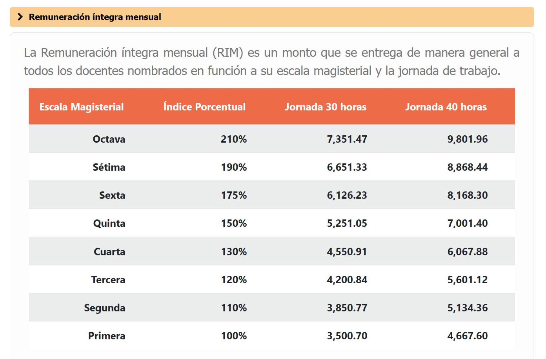 En la primera escala, la remuneración básica es de entre S/ 3,500 y S/ 4,670, mientras que, en la octava, el docente puede percibir entre S/7,350 y S/ 9,800. “Además, a partir de la tercera escala, los docentes pueden aspirar a cargos como directores de colegios o de UGELs”, explicó Cantoral.