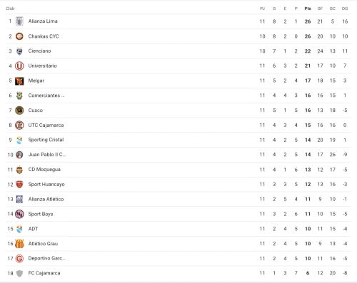 Con este resultado, la U sumó 21 puntos y se puso a cinco de Alianza Lima y Los Chancas, que tienen 26 unidades cada uno. El deportivo Garcilaso cayó a la penúltima posición con 10 puntos.