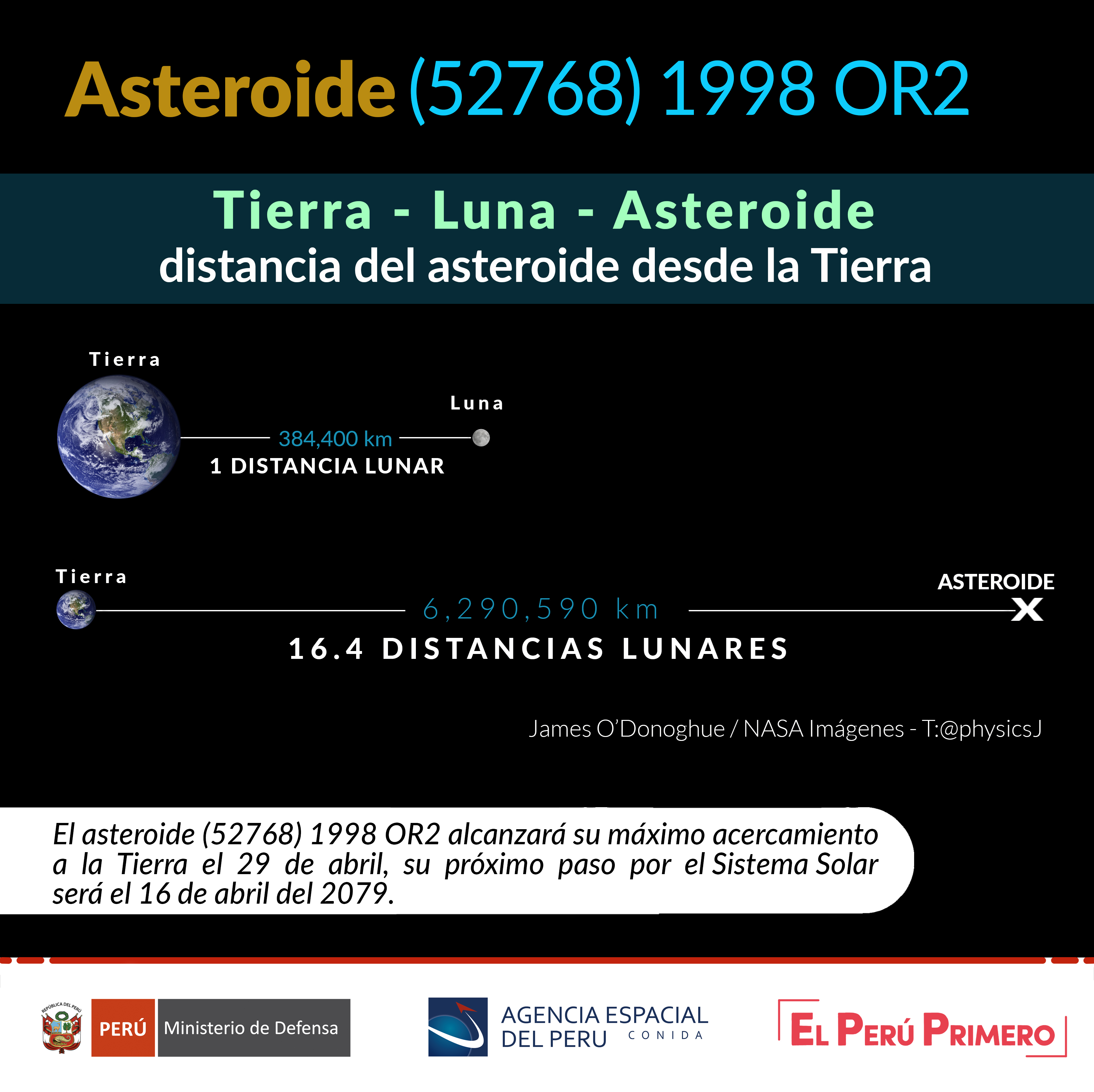 La Agencia Espacial del Perú - Conida ha capturado una nueva imagen del asteroide (52768) 1998 OR2 con el telescopio de 1m del Observatorio Astronómico de Moquegua, ubicado en el Centro Poblado de Cambrune. Este asteroide alcanzó su máximo acercamiento a la Tierra hoy el 29 de abril del 2020 y no representa peligro real de impacto para nuestro planeta.