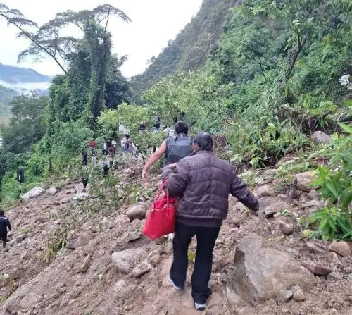 Algunas personas cruzaron en forma temeraria por la zona del deslizamiento poniendo en riesgo su integridad física.