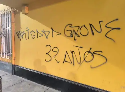 pintas habrían sido hechas por presuntos integrantes de la Brigada Grone, hinchada trujillana de equipo de La Victoria, que se autodenomina la primera en formarse fuera de Lima. Ellos realizaron un banderazo por las principales calles del centro histórico de la ciudad por sus 32 años de vida institucional.