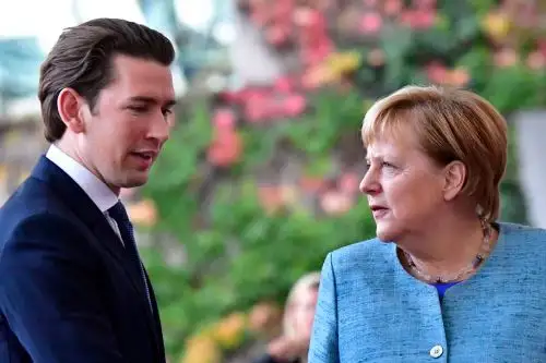 En la foto, la canciller alemana, Angela Merkel, recibe al canciller de Austria, Sebastian Kurz,Foto: AFP