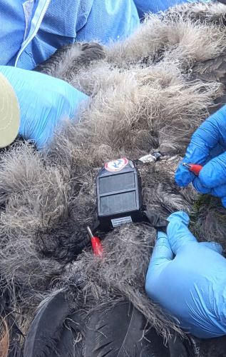 El ave intervenida es un pichón bautizado por la comunidad como “Uchuy”, el cual se encuentra próximo a realizar sus primeros vuelos. Con la colocación de un transmisor GPS y una banda alar de identificación con el número 14,