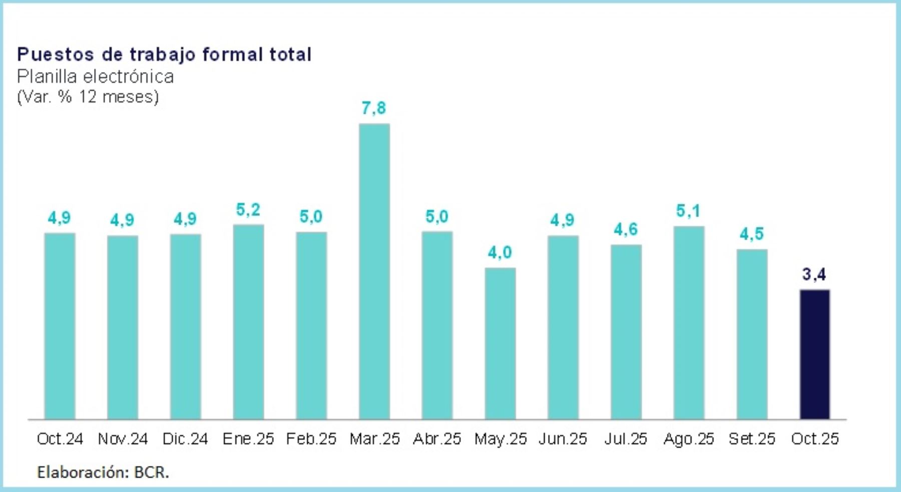 El Banco Central de Reserva del Perú (BCR) destacó hoy que el empleo formal creció 3.4% a nivel nacional en octubre del presente año, comparado con el similar mes del 2024.