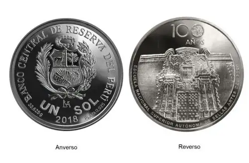 El Banco Central de Reserva (BCR) pone hoy en circulación una moneda de plata alusiva al centenario de la Escuela Nacional Superior Autónoma de Bellas Artes del Perú.