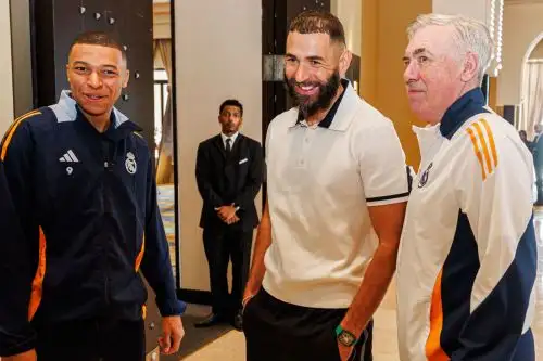 Karim Benzema visitó este jueves a los jugadores del Real Madrid en su hotel de concentración en la ciudad saudí de Yeda, donde el delantero francés milita en el Al Ittihad de la liga del país del Golfo Pérsico.