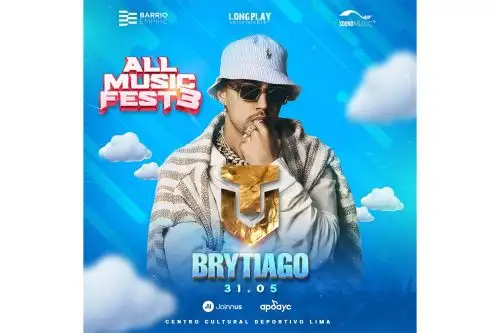 Desde Puerto Rico, Brytiago, uno de los más populares representantes del género urbano se une al line up del “All Music Fest 3”como parte de la cartelera estelar que se realizará el sábado 31 de mayo en el Club Cultural Deportivo Lima en Chorrillos