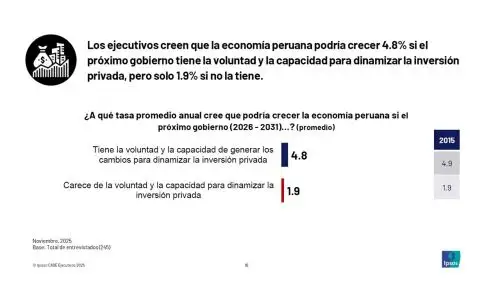 La percepción de retroceso del país disminuye significativamente entre lso empresarios, quienes se muestran optimistas en un mejor desempeño económico, según la encuesta de Ipsos Perú para CADE Ejecutivos 2025 .