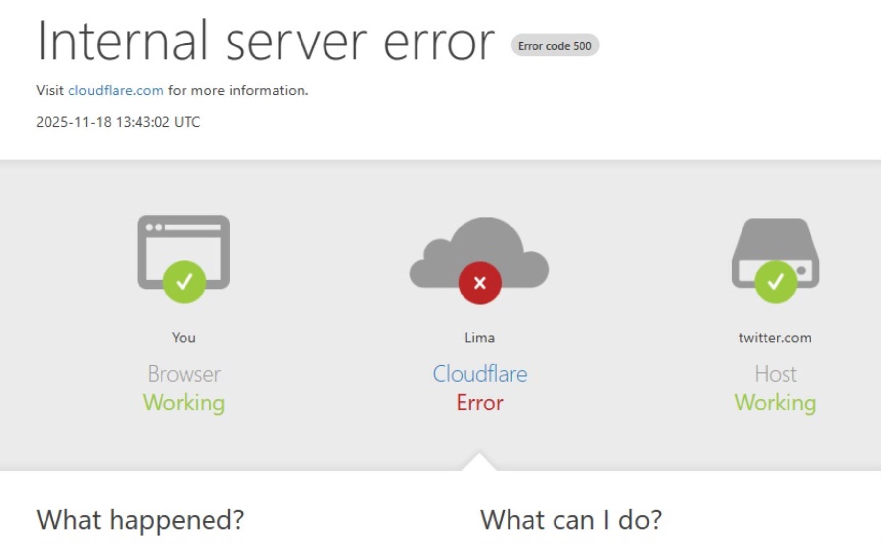 La caída de Cloudflare está afectando a medio mundo. La popular compañía de servicios web ha sufrido una caída global que ha dejado fuera de línea a numerosos servicios y aplicaciones de Internet, incluyendo la red social X (antes Twitter), ChatGPT y plataformas de videojuegos.