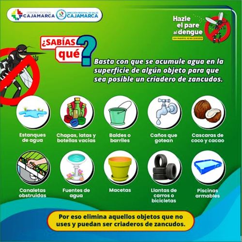 La Diresa Cajamarca continúa desarrollando acciones de prevención, campañas de información y concientización a la ciudadana. “El dengue es una enfermedad que podría complicar la salud de personas vulnerables como adultos mayores con comorbilidad, podría complicar la salud de los niños. Estamos pendientes de esta situación”, puntualizó.