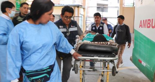trabajador minero rescatado arribó en una ambulancia procedente del centro de salud de Chalamarca y fue trasladado directamente al servicio de traumashock.