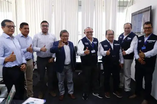 Gobernador del Callao, Ciro Castillo Rojo, y el titular del Fondo Nacional de Desarrollo Pesquero (Fondepes), José Andrades Sosa se reunieron con sus respectivos equipos para relanzar el desembarcadero pesquero artesanal Bahía Blanca. ANDINA/ Fondepes