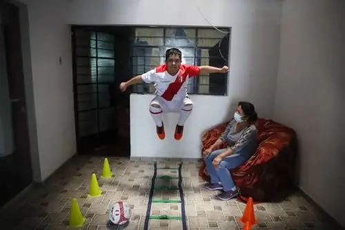 Los ídolos de Joseph Flores (de 18) son Paolo Guerrero y Jefferson Farfán. Como Ronny, también dibuja y colorea en su cuaderno banderas y jugadores. Le gusta repetir partidos clásicos y vibrar nuevamente con un Nueva Zelanda-Perú. Y, dos veces por semana, de 6:30 a 8:00 p. m., entrena virtualmente con los demás preseleccionados.