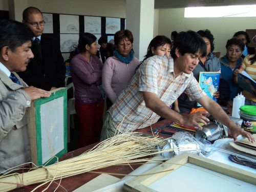 Artesanos del distrito de Végueta, en la provincia limeña de Huaura, participan en el segundo taller de "Elaboración de papel a base de junco y totora", organizado por la Dirección Regional de Comercio Exterior y Turismo (Dircetur) con la finalidad de diversificar la oferta artesanal.