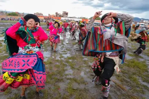 El recorrido, que empieza en el parque Augusto B. Leguía, se da al compás de canciones entonadas en quechua, al ritmo de charangos y quenas; mientras los asistentes se divierten bailando y lanzándose talco y serpentinas.