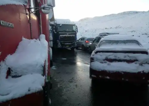 Desde las 18:30 horas del domingo la nevada se intensificó, obligando a cerrar el tránsito esa importante vía. Cientos de vehículos formaron una larga fila debido a este evento natural.