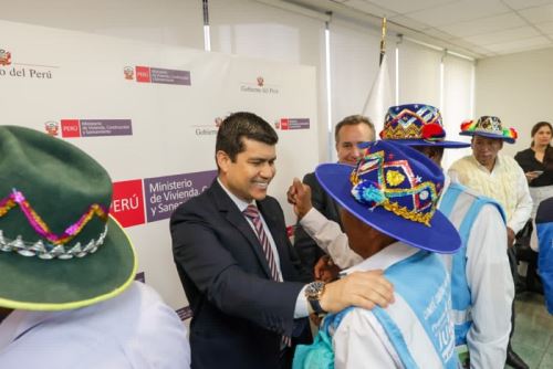 En la ceremonia participaron el viceministro de Construcción y Saneamiento, Christian Barrantes; el director ejecutivo del Programa Nacional de Saneamiento Urbano (PNSU), Eleazar Lozano; el coordinador general de la UCP Juliaca, Juan Carlos Córdova, y dirigentes de las familias beneficiarias.