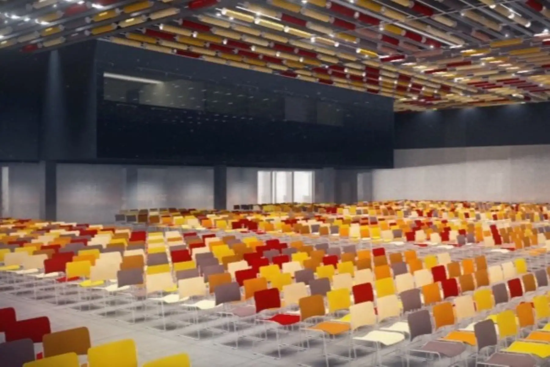Además, infraestructura especializada para eventos de gran escala, que incluye áreas de soporte como centro de gestión del recinto, almacenes, espacios de mantenimiento, zonas de catering y limpieza, cafeterías, cabinas de traducción y áreas de esparcimiento.